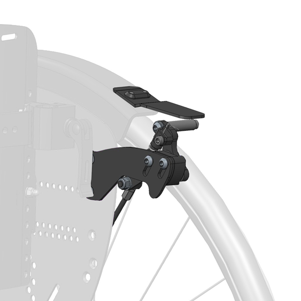Falls kein Therapietisch gewählt wurde, muss ein zusätzlicher Halter für den Handbremshebel an der Mittelsäule befestigt werden. Dieser ist höhenverstellbar.