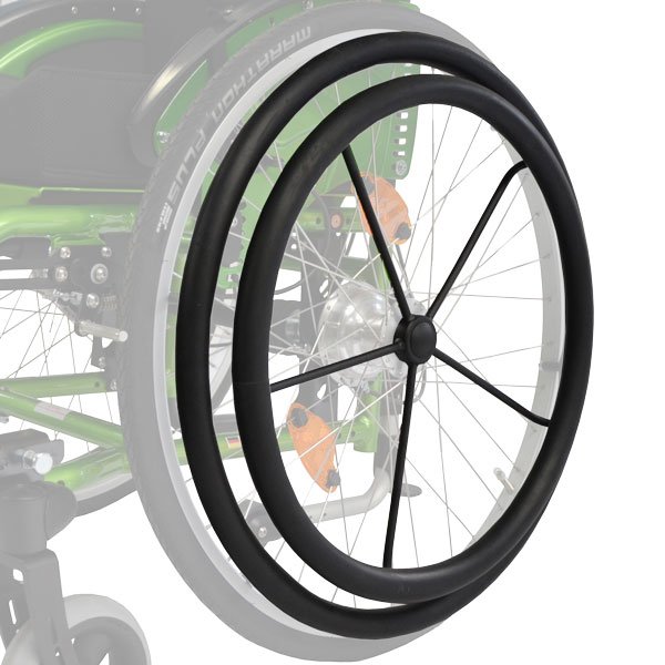 Maxgrepp-Greifringe können an Standard- oder Leichtlaufräder montiert werden und schließen, ähnlich wie Profilräder, die Lücke zwischen Felge und Greifring. Sie verfügen über eine 33 mm breite, ergonomisch geformte Handballenauflage aus Silikon und erleichtern insbesondere Nutzern mit eingeschränkter Feinmotorik das Antreiben enorm.Maxgrep-Greifring sind in den Größen 20“-24“ erhältlich.
