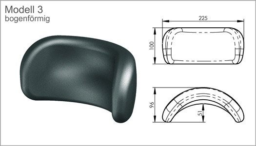Unsere Standardkopfstützen sind stufenlos höhen-, tiefen- und winkelverstellbar. Sie sind aus dermatologisch unbedenklichem PUR-Integralschaum, mit hautsympathischer Oberfläche und abwaschbar. Wir bieten unsere Standard-Kopfstützen in drei verschiedenen Formen und jeweils zwei unterschiedlichen Größen an.
