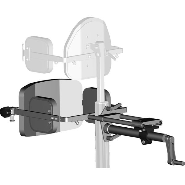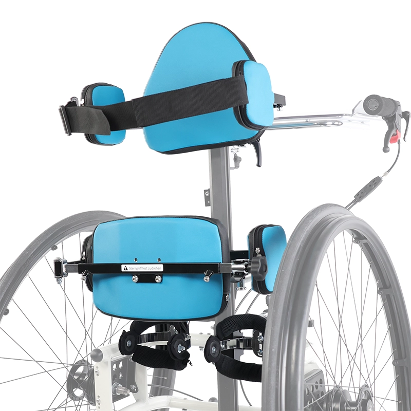 Die seitlichen Beckenpelotten sind stufenlos in der Breite, Höhe und Tiefe verstellbar.