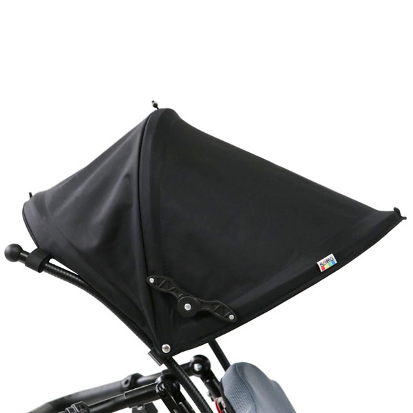 If the roof is not needed, it can easily be closed and locked on the wheelchair. The protection can also be easily, and if desired completely (including gooseneck), removed. And just as easily it can be put back on the adapter mounted on the chair.