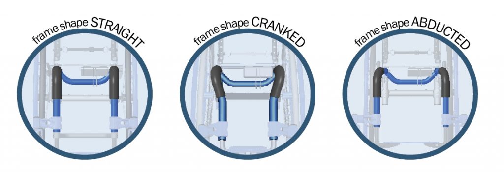 Always the right frameEveryone is different and so there are no SORG wheelchairs, that are exactly the same. It starts with the choice of the frame. The open frame of the Airon is available in three variants (with straight, abducted or cranked). Each variant is optionally available with a frame angle of 90 ° or 100 °. So everyone can find their perfect chair.