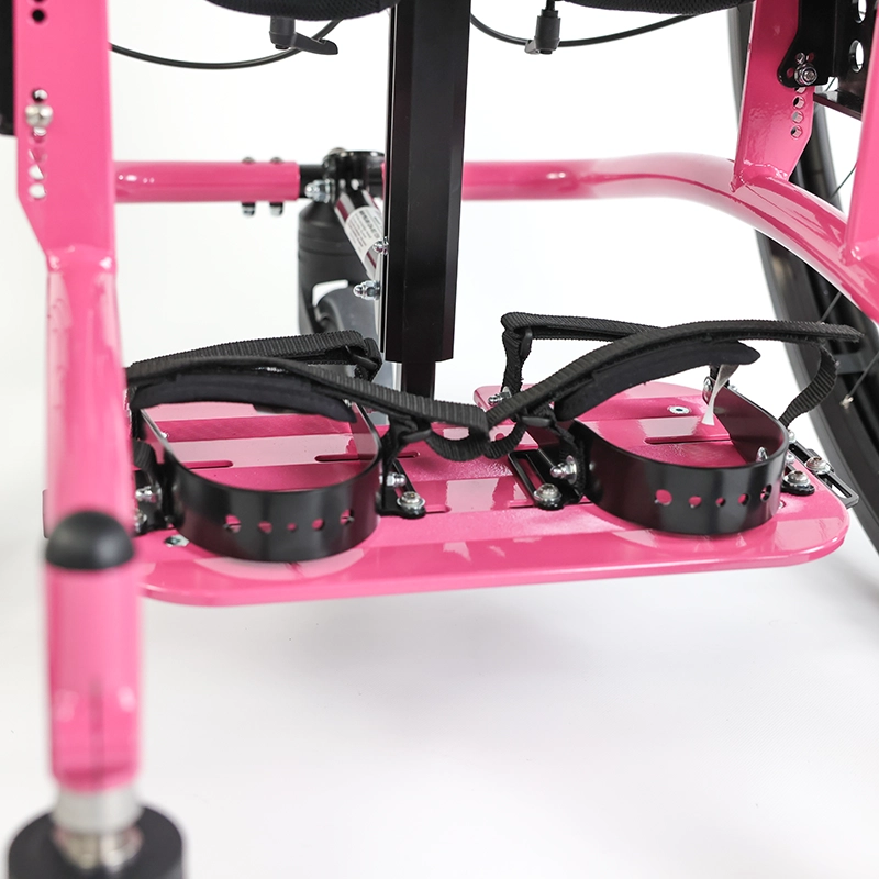 While developing the Boogie Drive, easy handling and setting for the therapists was important to us. The tilt can be adjusted in angle steplessly with a gas pressure spring or telescope from 0° to 15° and through the easy and individual setting of the truss pads and foot plates you can react to each necessary therapy form. The Boogie Drive helps its users to form a positive attitude through mobile standing.