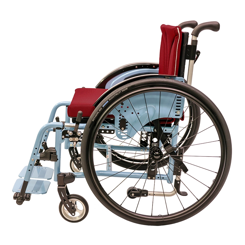 All measurements such as: gripping point, the length for turning the driving wheel, seat position, seat angle, axle plate position, back angle, legroom, leg stretch angle and camber can be changed at any time with little work. Even after purchase! This way it is easy to react to anatomical changes or needed modifications for treatment.